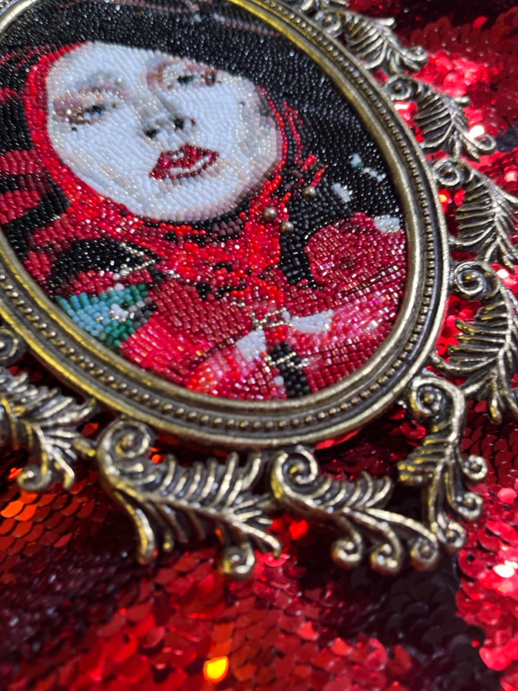 Experience the MAYHEM with this beaded portrait of Mother Gaga herself from the Abracadabra video! Feel the beads under your fingers, this portrait’s on fire! 🔥